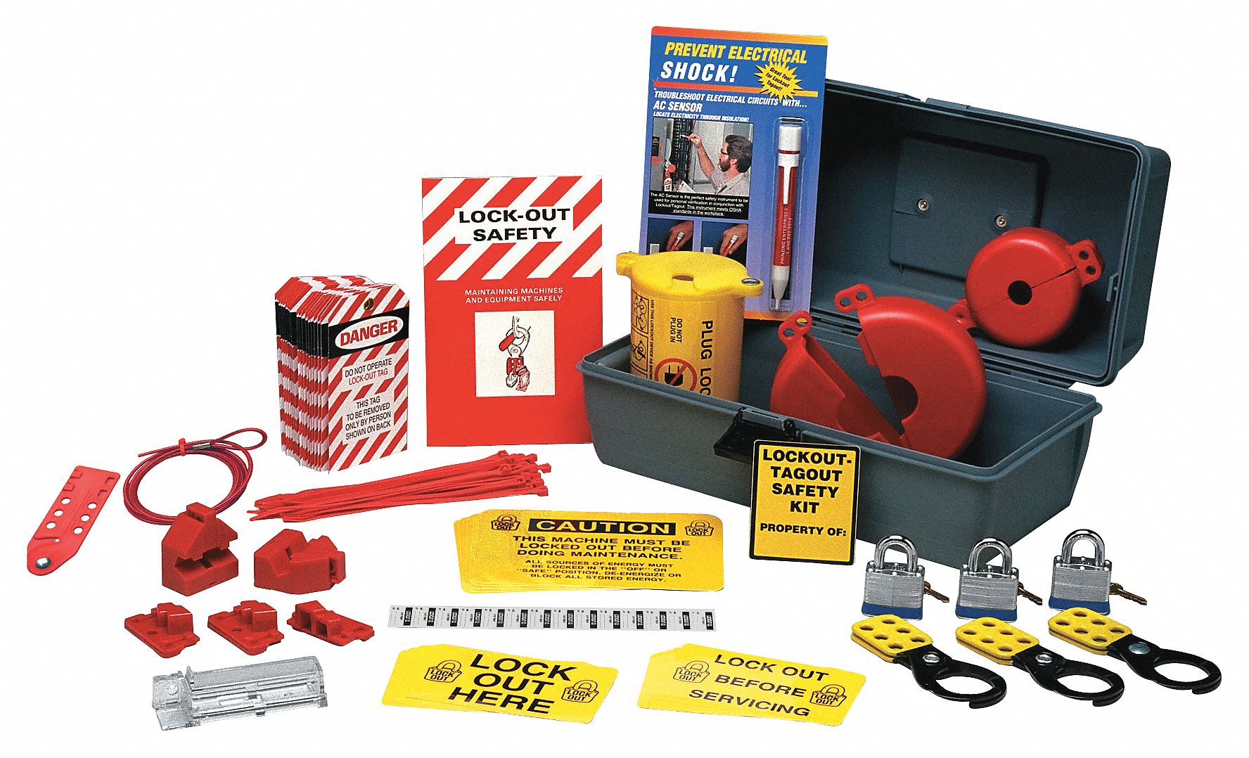 Airgas A81ksk347 Accuform Signs Deluxe Plus Lockout Kit Includes 1 Lockout Box 2 Hasps 6 Padlock 9 Circuit Breaker Lockouts 25 Circuit Breaker Lockout Tab s And 1 Ac Voltage Sensor