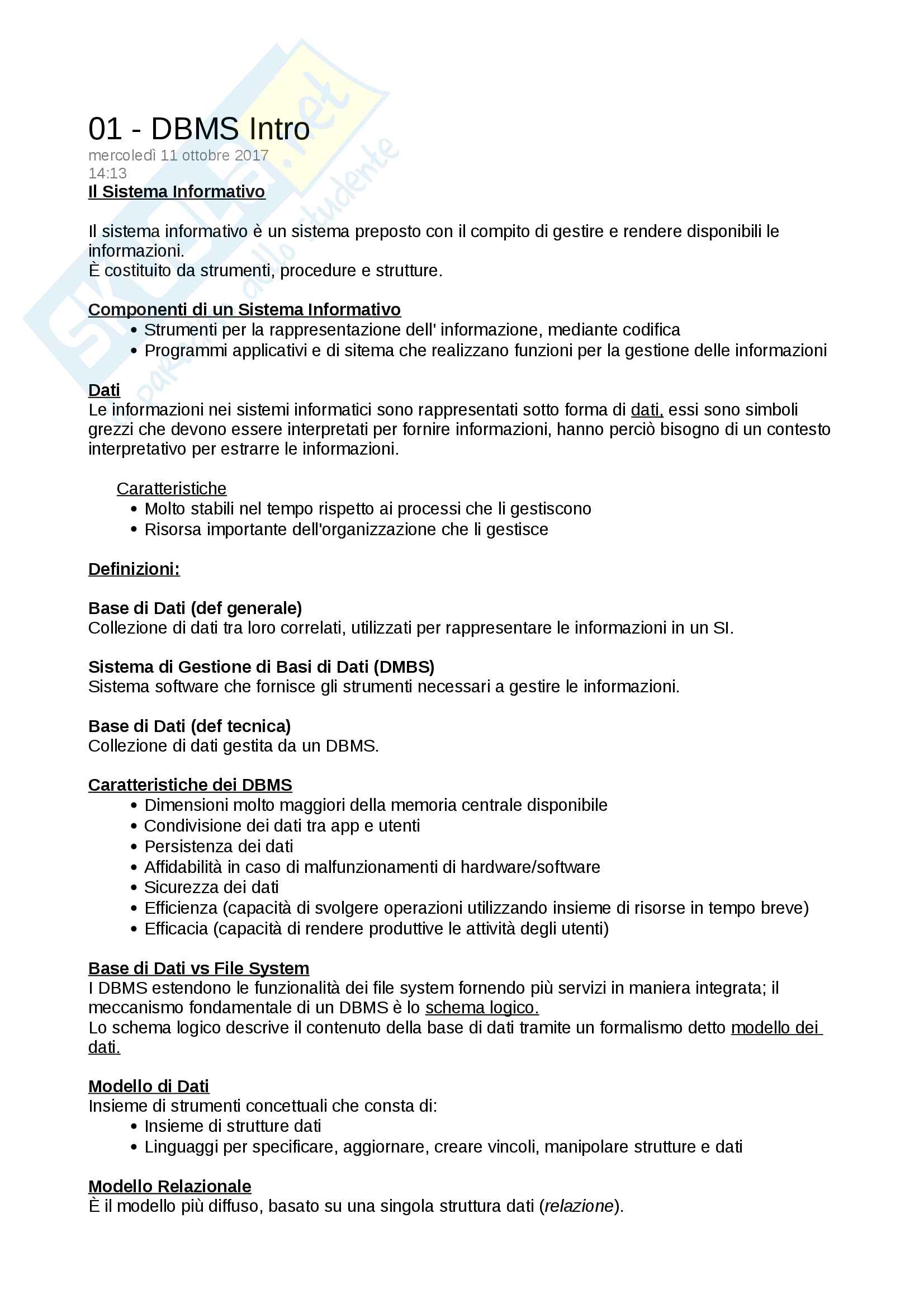 Ciao e benvenuto al corso sulle basi di dati dallo schema E/R all'SQL Questo videocorso ti permetterà di apprendere come creare una base di dati solida (tramite le 3 fasi fondamentali della progettazione) e ad interrogarla tramite le query base in linguaggio SQL (Structured Query Language) allo scopo di trasformare i dati in informazioni, inserire, modificare ed eliminare i dati dalle. Appunti di Basi di dati basati su appunti personali del publisher presi alle lezioni della prof Ferrari dell’università degli Studi Insubria Como Varese Uninsubria, facoltà di. Le basi di dati sonopersistenti Hanno un tempo di vita indipendente dalle singole esecuzioni dei programmi che le utilizzano In contrasto, i dati gestiti da un programma in memoria centrale hanno una vita che inizia e termina con l‘esecuzione del programma 14 Basi di Dati 19/ 1 –Nozioni Preliminari.