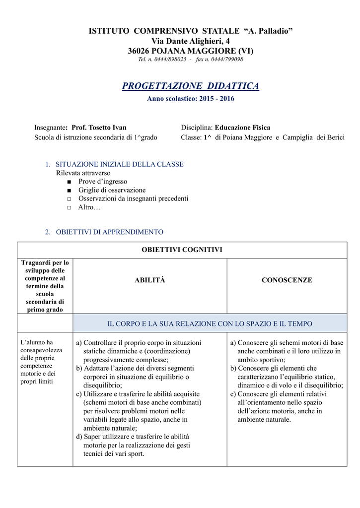 Educazione Fisica Istituto Comprensivo Di Pojana Maggiore