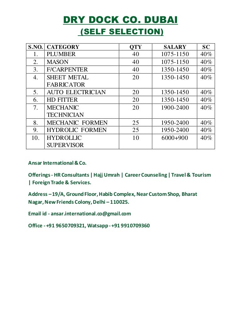 Urgent Requirement For Dry Dock Co Dubai Self Selection
