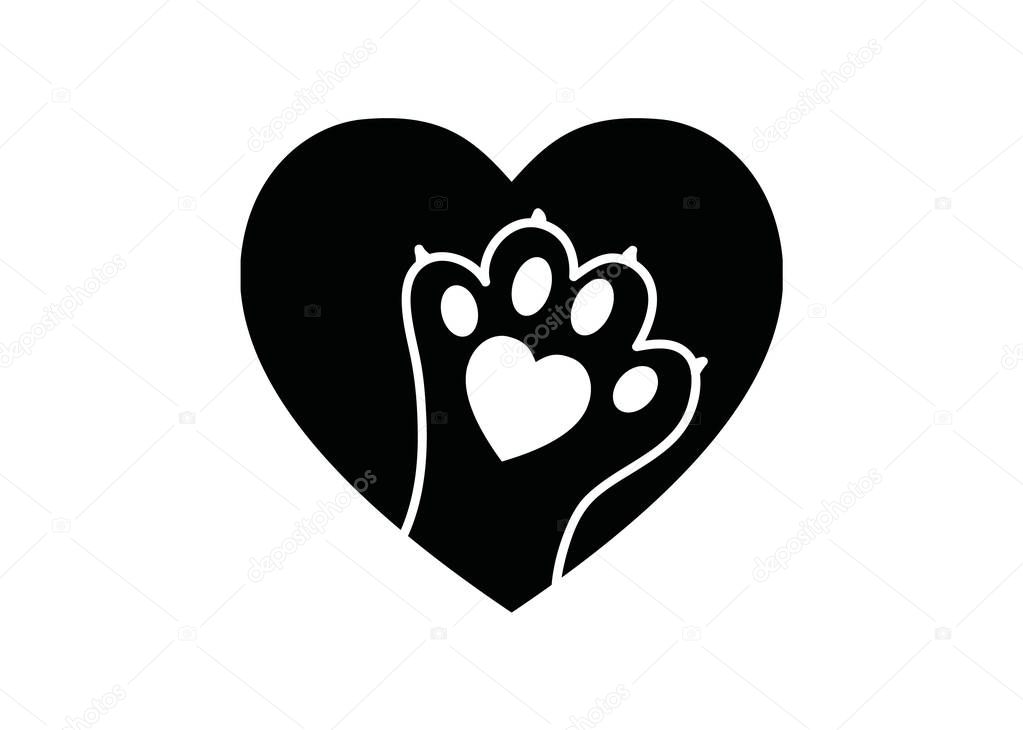 Animal Paw Print In Heart Black And White Logo For Shelters Veterinary Symbol Animal Lovers Premium Vector In Adobe Illustrator Ai Ai Format Encapsulated Postscript Eps Eps Format