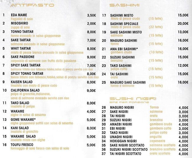 Il Menu Foto Di Ieie Da Toshi Firenze Tripadvisor