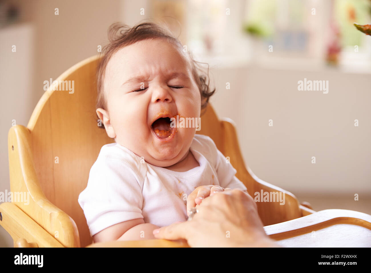 Stanco Bambino In Sedia Alta Al Momento Dei Pasti Foto Stock Alamy