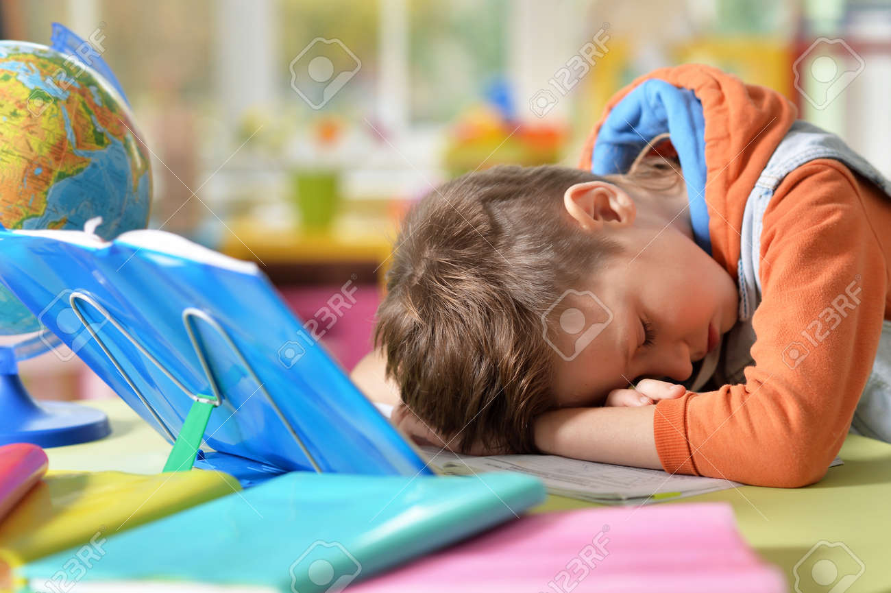 Immagini Stock Stanco Bambino Si E Addormentato Mentre Stava Facendo Il Suo Dovere Image