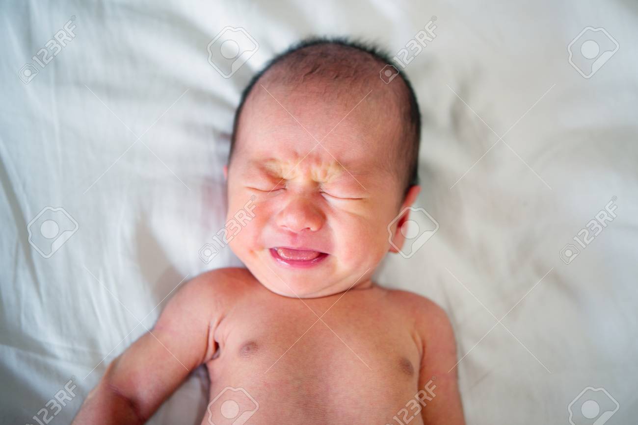 Immagini Stock Neonato Gridante Neonato Asiatico 7 Giorni Di Eta Bambino Appena Nato Stanco E Affamato Nel Letto Image