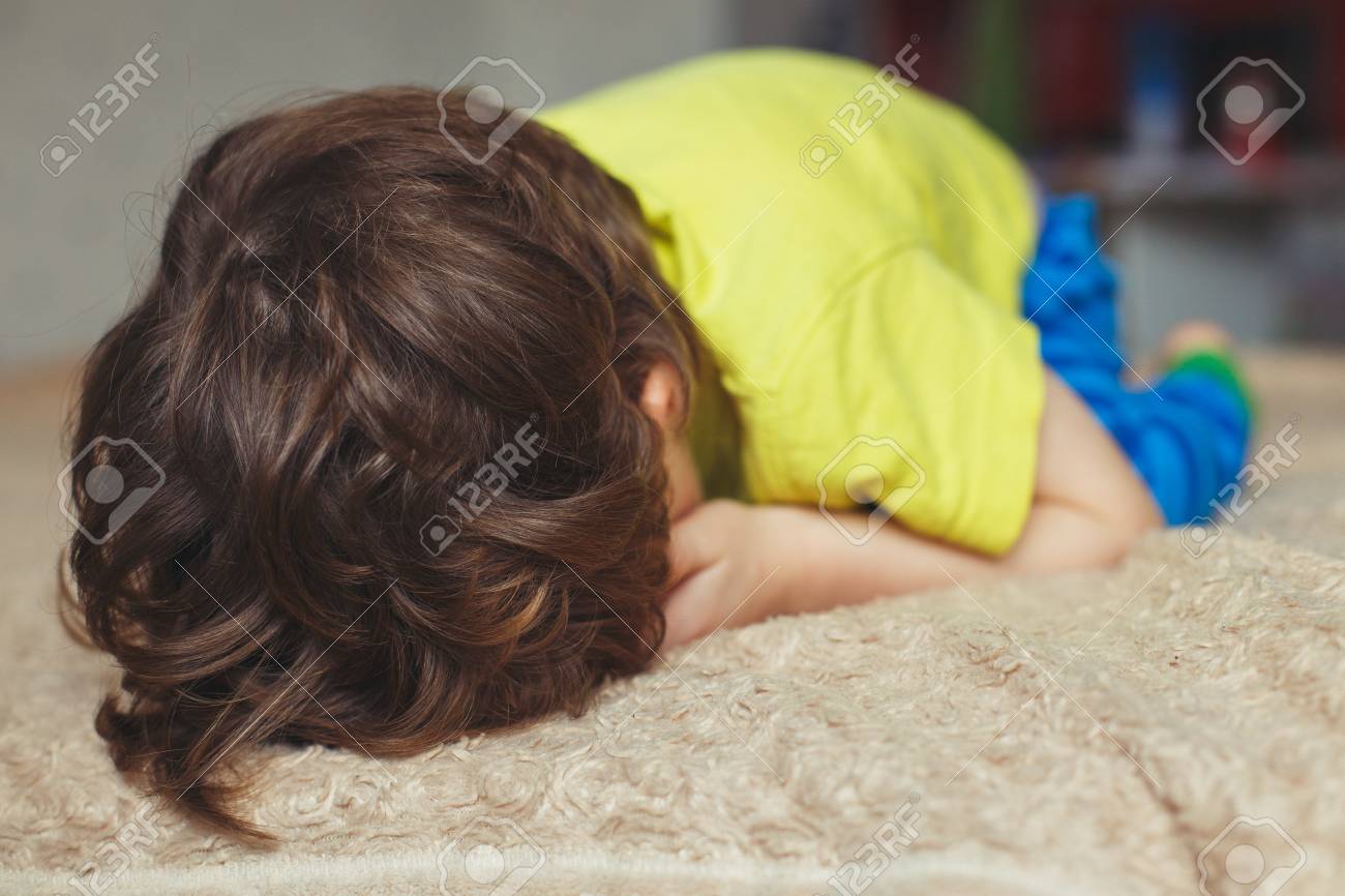 Immagini Stock Stanco Bambino Ragazzo Giaceva A Terra Con La Faccia In Giu Image
