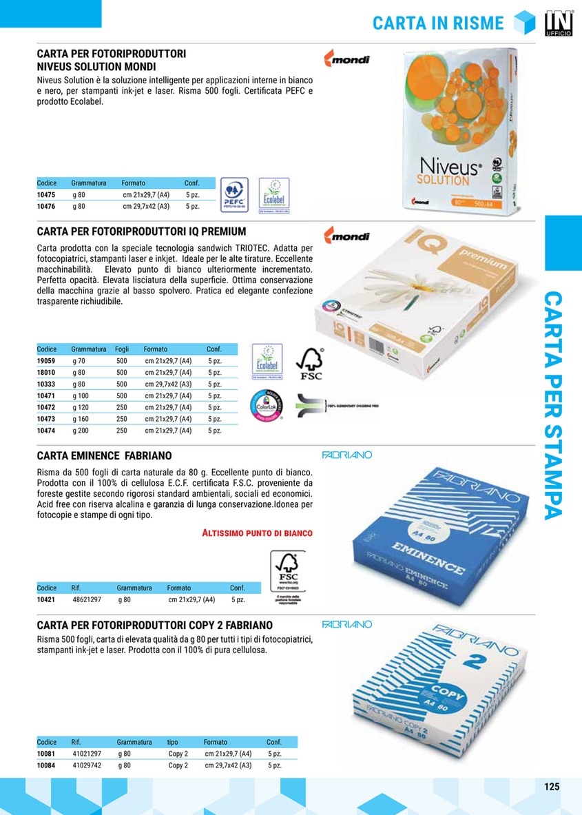 La differenza tra il sistema metrico europeo e americano Mentre il sistema europeo di misurazione della grammatura è basato unicamente sul peso di un foglio di carta per ogni metro quadro di superficie, negli Stati Uniti viene utilizzata, al posto o in aggiunta alla grammatura, anche un’altra unità di misura, il basis weightIl basis weight è espresso in pounds e viene calcolato su una. Punto di Bianco EANCode Grammatura 80 g/m² Larghezza 210 mm Marca Office Depot Punto di bianco 55 CIE Superficie Liscia Tipo di prodotto Carta riciclata Tipologia stampante Inkjet / Laser. Fiera del Bianco Volantino Carrefour Iper Carugate Strada provinciale 8 km 2 Sfoglia subito le promozioni disponibili in negozio!.