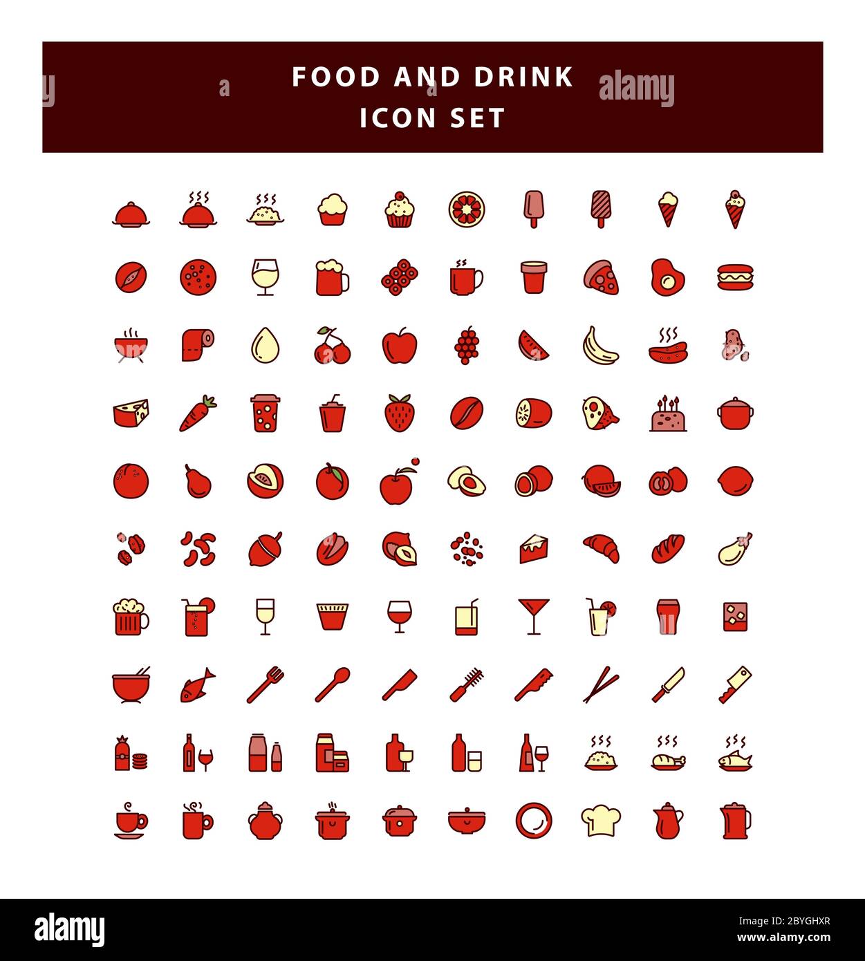 Set Di Icona Di Cibi E Bevande Con Vettore Di Disegno Stile Profilo Pieno Immagine E Vettoriale Alamy