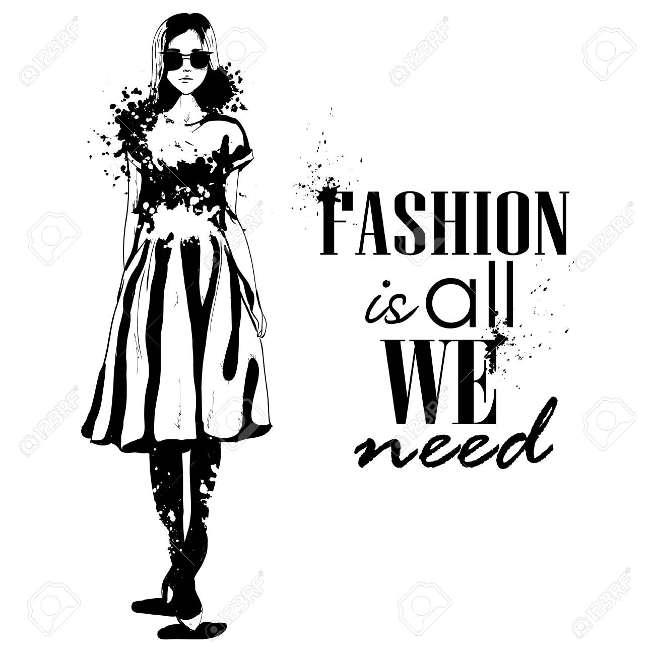 Vettoriale Ritratto Di Ragazza Alla Moda Il Disegno A Mano Di Vettore Da Spruzza La Moda E Tutto Cio Di Cui Abbiamo Bisogno Image