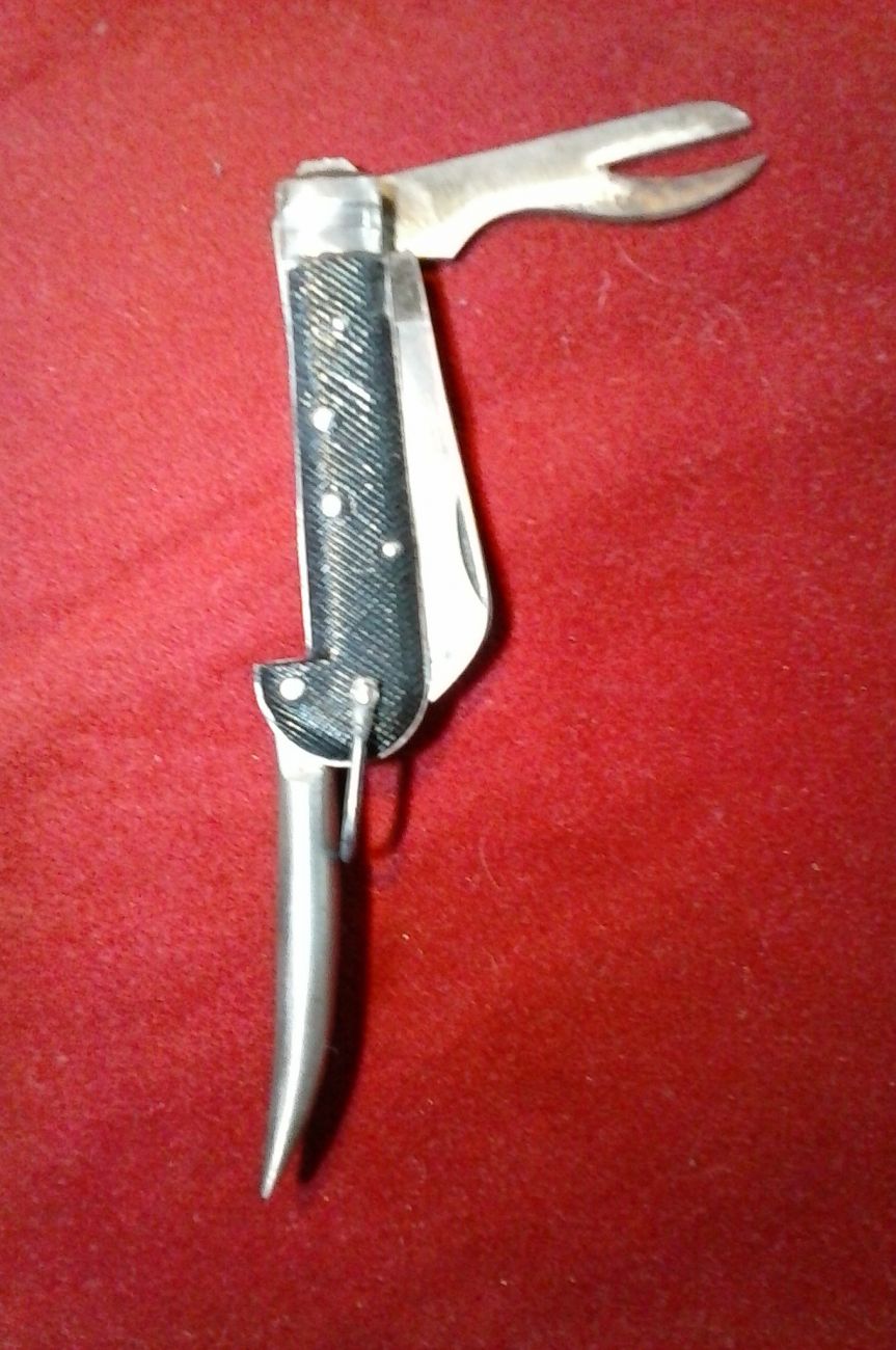 Salvo la eventuale presenza di altri marchi è il coltello tattico dell'EI Io ebbi il mio nel 1969 , all'atto dell'ingresso in Accademia Non so quando entrò in uso , ma sicuramente già c'era nei tardi anni 50 Credo che non venga più distribuito. Il coltello qui presentato mi è stato descritto come coltello in uso nell'esercito tedesco durante l'ultimo conflitto ne ho uno da qualche parte e lo catalogai come "tattico" tedesco Potrebbe anche essere WW2 Poi vedrò meglio A presto, spero Andrea "Dal mio punto di vista il tuo non è un ww2 perche i coltellini tattici. Ieri dopo pranzo sono andato a fare 2 passi lungo il Sile Ho portato con me il multiuso dell'Esercito Italiano, un coltello che presumo abbia una 40ina d'anni dal momento che veniva fornito fino alla fine degli anni '70 Viene nominato tattico ma di tattico non ha nulla, è un rozzo chiudibile.