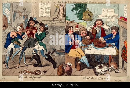 La Felicita Francese Inglese La Miseria Stampa Mostra Sulla Sinistra Quattro Frastagliato E Morendo Di Fame Dei Sanculotti Combattendo Sopra Una Rana Un Gatto Ha Lasciato Cadere Morto A Loro I