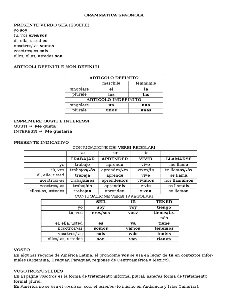 Utilizza questo indice per trovare una spiegazione di grammatica spagnola Grammatica spagnola per principianti 101 Gli articoli 102 Il genere 103 Il plurale 104 I pronomi personali 105 Gli aggettivi 106 Gli aggettivi possessivi 107 I pronomi possessivi 108 I dimostrativi 109 Il verbo Essere / Ser 110 Il verbo Hay 111 Il complemento diretto e. Leggi gli appunti su grammaticaspagnola qui Gli appunti dalle medie, alle superiori e l'università sul motore di ricerca appunti di Skuolanet. Grammatica Spagnola Nell'insegnamento Dello Spagnolo Lingua Spagnola Aula Di Spagnolo Classe Di Inglese Attività Verbi Irregolari Vocabolario Pagine Di Esercizi Lectura para practicar el presente de indicativo.