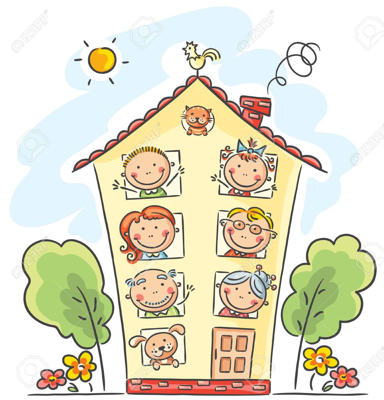 Fumetto Di Disegno Di Una Famiglia E Proprio Bellissima Casa Immagini Vettoriali Stock E Altre Immagini Di Adulto Istock
