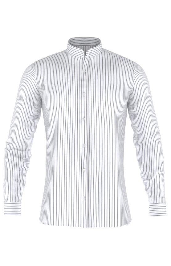 Carrel Camicia Bianca E Azzurra A Righe Bastoncino Collo Italiano