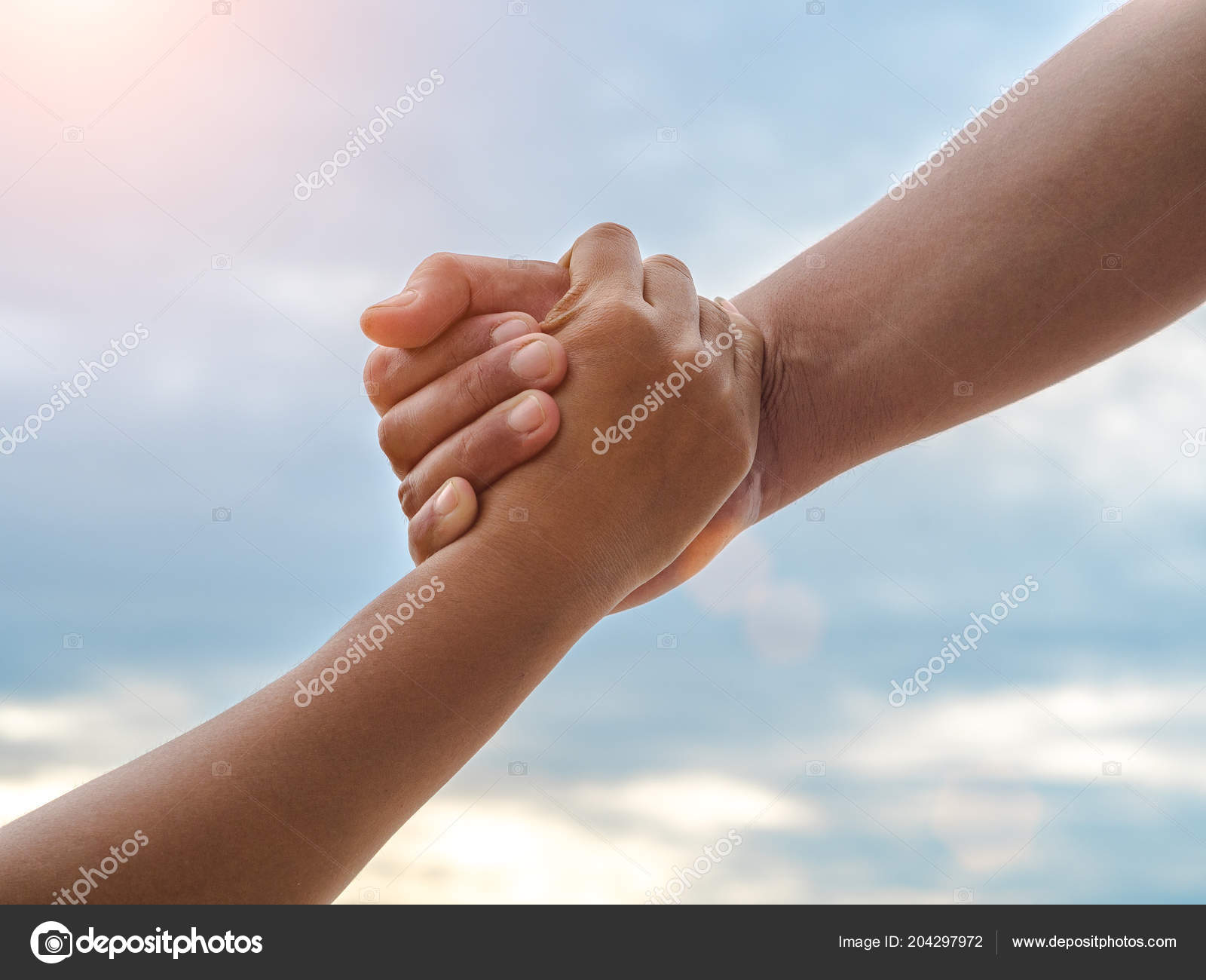 Closeup Helping Hands Sky Background Rescue Help Cencept Stock Photo C Suriyawut