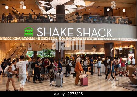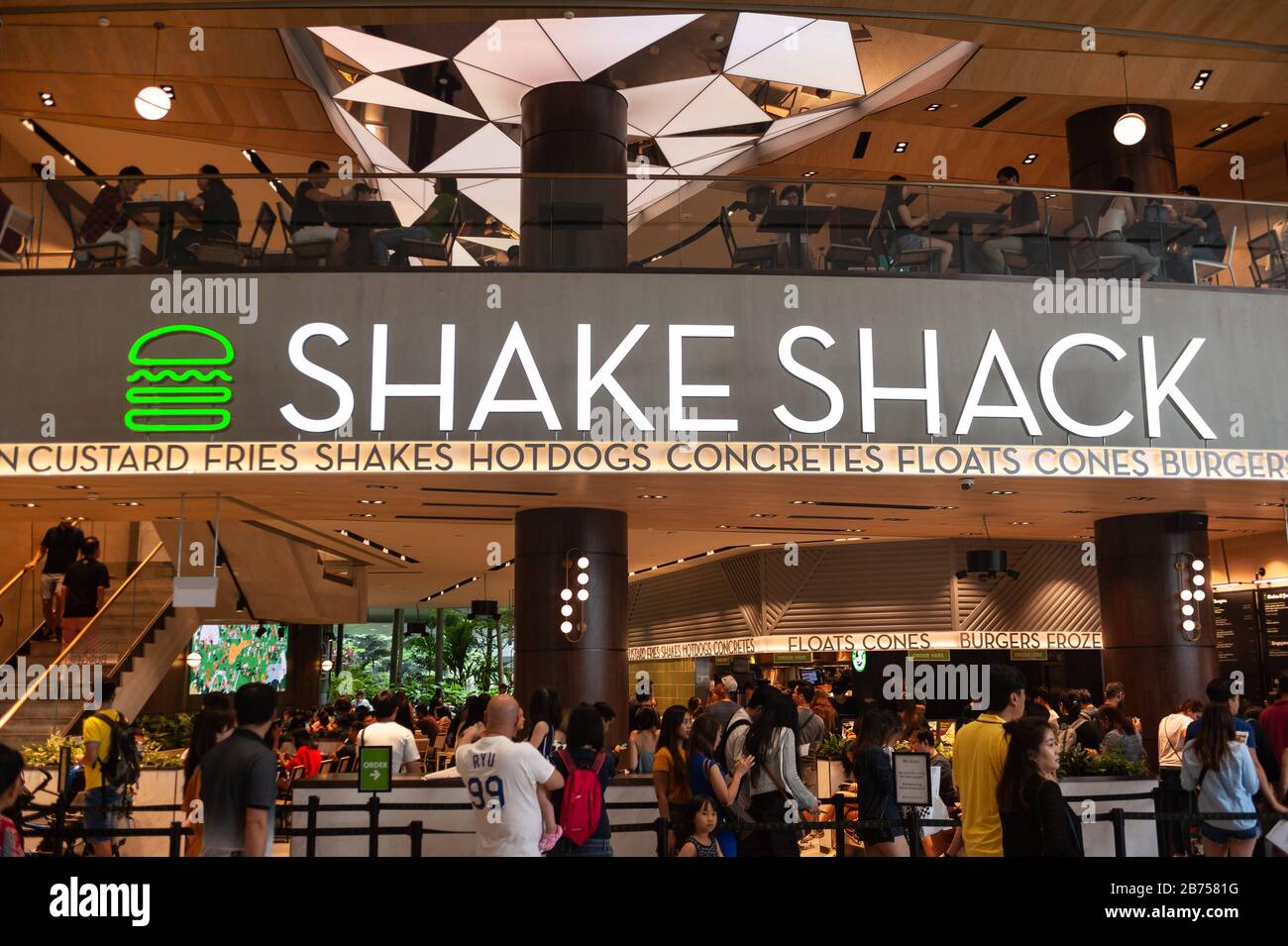 28 04 19 Singapore Singapore Il Primo Ristorante Fast Food Di Shake Shack Catena In Singapore Nel Nuovo Gioiello Terminal Presso L Aeroporto Changi Foto Stock Alamy