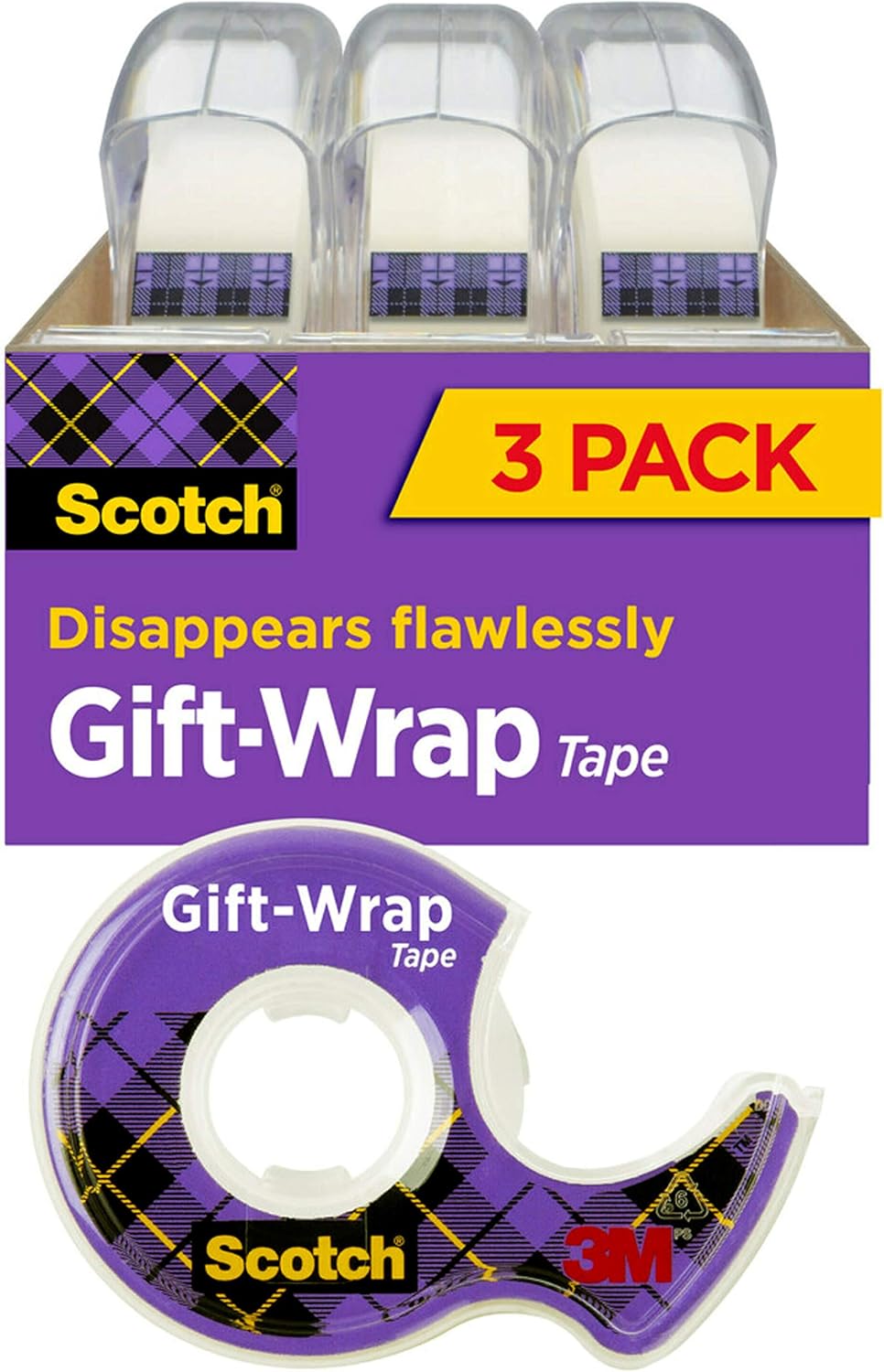 Scotch Gift Wrap Tape 3 Rolls The Go To Tape For The Holidays 3 4 X 300 Inches Dispensered 311 Clear Tapes Office Products Amazon Com