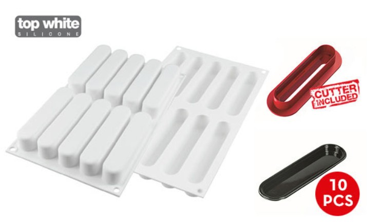 Kit Stampo Silicone E 10 Piattini Per Eclair Silikomart