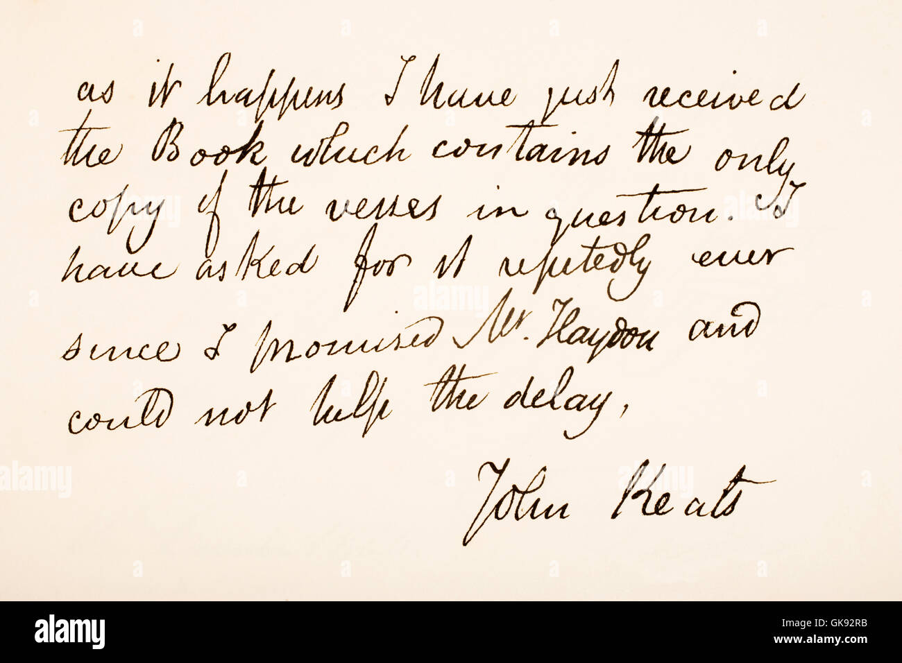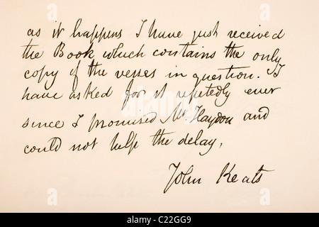 John Keats 1795 11 Poeta Romantico Inglese La Scrittura A Mano Campione Foto Stock Alamy