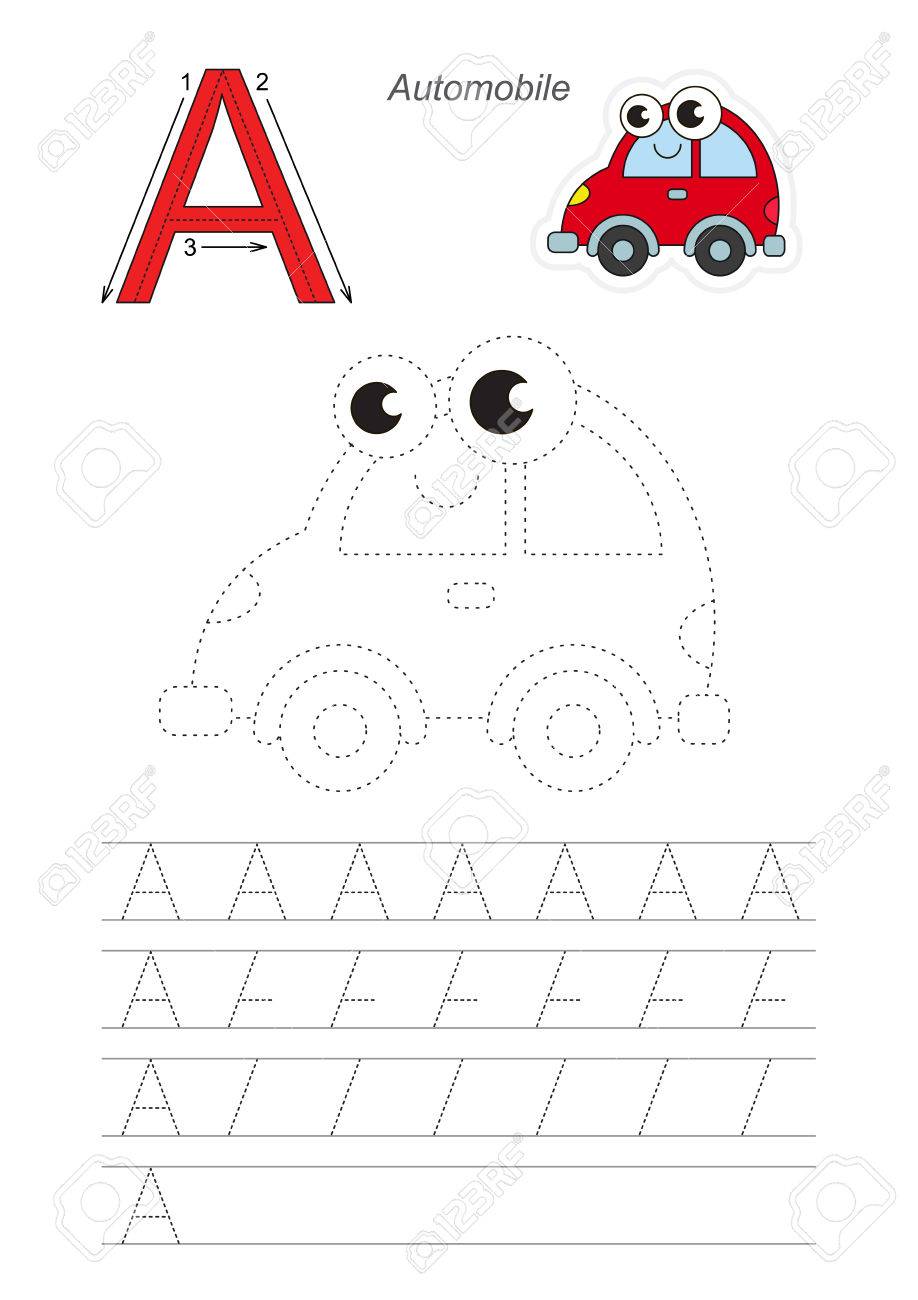 Vettoriale Foglio Di Lavoro Illustrato Vettoriale Impara La Scrittura A Mano Gioco E Istruzione Pagina Da Tracciare Facile Gioco Educativo Per Bambini Livello Semplice Completa L Alfabeto In Inglese Tracciare Foglio Di