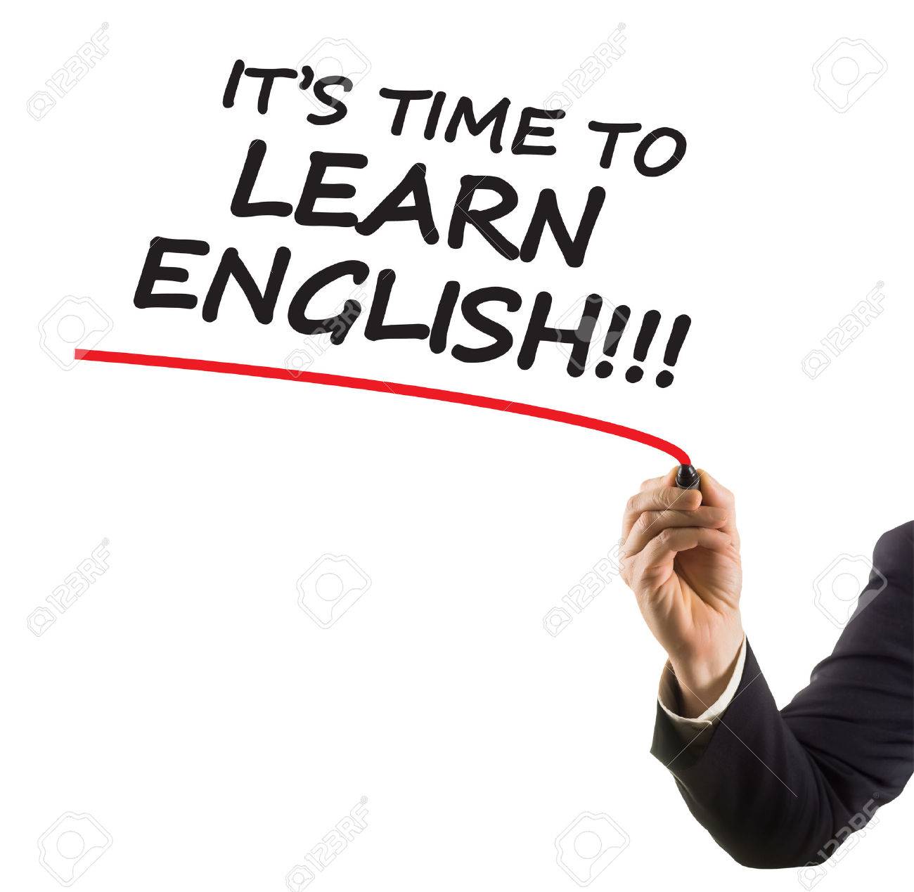 Immagini Stock Mano D Affari Con Punta Di Feltro Testo La Scrittura Di Indicatore E Il Momento Di Imparare L Inglese Image