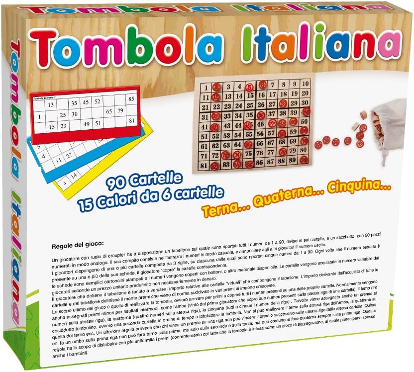 Dopo il grandissimo successo delle cartelle della tombola in PDF pubblicate due anni fa e scaricate migliaia e migliaia di volte al mese, Squarciomomo rilancia e lo fa con 6 NUOVE GRAFICHE (in ulteriore aumento nei prossimi mesi) tutte con cartelle fino alla numero 10!!!. Tombola Board Game LxWxH 115″ x 8″ x 2″ Weighs 37 lbs Beautifully designed game comes with 24 doublesided cards, 360 chips, a tabellone (calling board), and tombolini tiles numbered 190 in a storage pouch Up to 24 people can play together. Home page tombola Tombola con i primi numeri Tombola con i primi numeri by bussolascuola on 1659 Tombola con i primi numeri Per classe I tombola sino al , set di cartelle e la proposta di alcuni giochi inglese tecnologie natale geometria tabelline codeweek numeri moltiplicazione piante informatica lingua italiana.