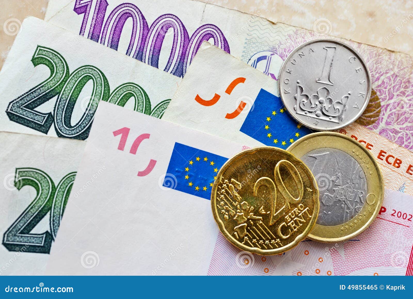 Euro E Soldi Cechi Della Corona Immagine Stock Immagine Di Euro Aumento