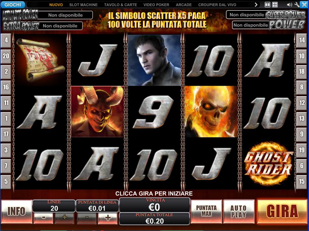 Tutte le slot dei casino online in un'unica pagina Gioca alle slot gratis, impare le regole ed i simboli, vinci soldi reali con i nostri bonus senza deposito e free spins!. Giochi di combattimento Integer Best Free Games Azione Ghost Ride 3D Season 3 Integer Best Free Games Diventa il Ghost Rider of Hell e governa il mondo folle della terza stagione!. Ghost Rider è l'ultimissima slot machine nata dalla collaborazione tra Playtech e Marvel Ispirata al film del 07 con protagonista Nicolas Cage, questa slot machine può contare su funzioni originali come il Ghost Hunt Bonus, che ti vedrà vestire i panni del Ghost Rider per dare la caccia, a bordo della tua moto, agli spiriti malvagi.