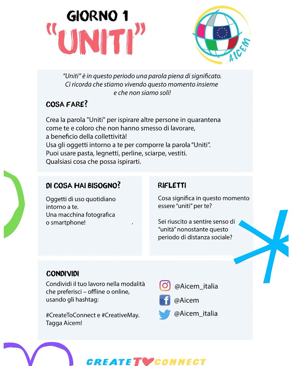 Aicem Volete Unirvi A Noi Iniziamo Oggi Con Il Primo Degli Appuntamenti Di Questo Mese Usa Gli Oggetti Intorno A Te Per Comporre La Parola Uniti Scatta Una Foto E