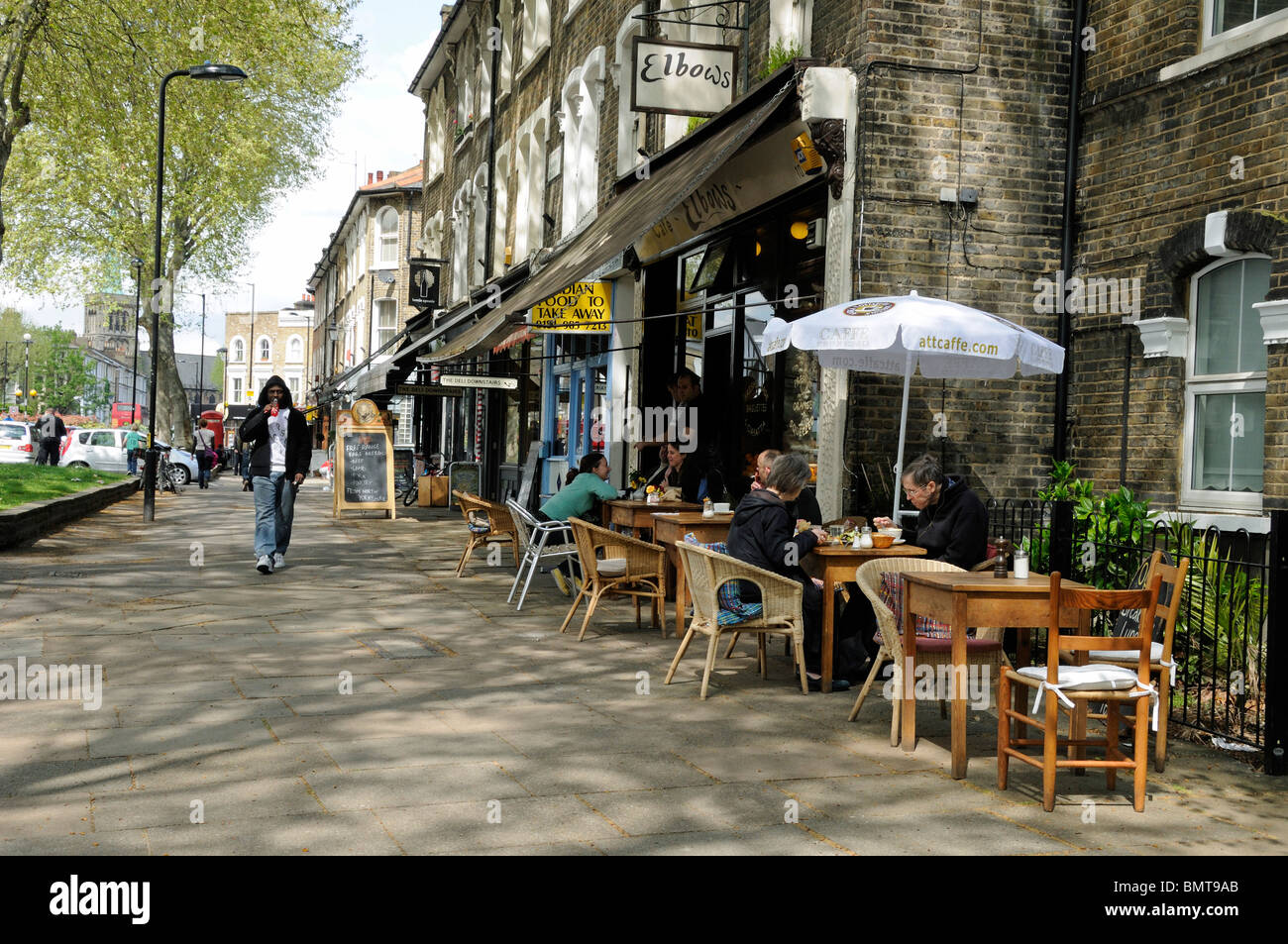 Persone Mangiare Fuori Gomiti Cafe Nella Zona Alla Moda Di Hackney Londra Inghilterra Regno Unito Foto Stock Alamy