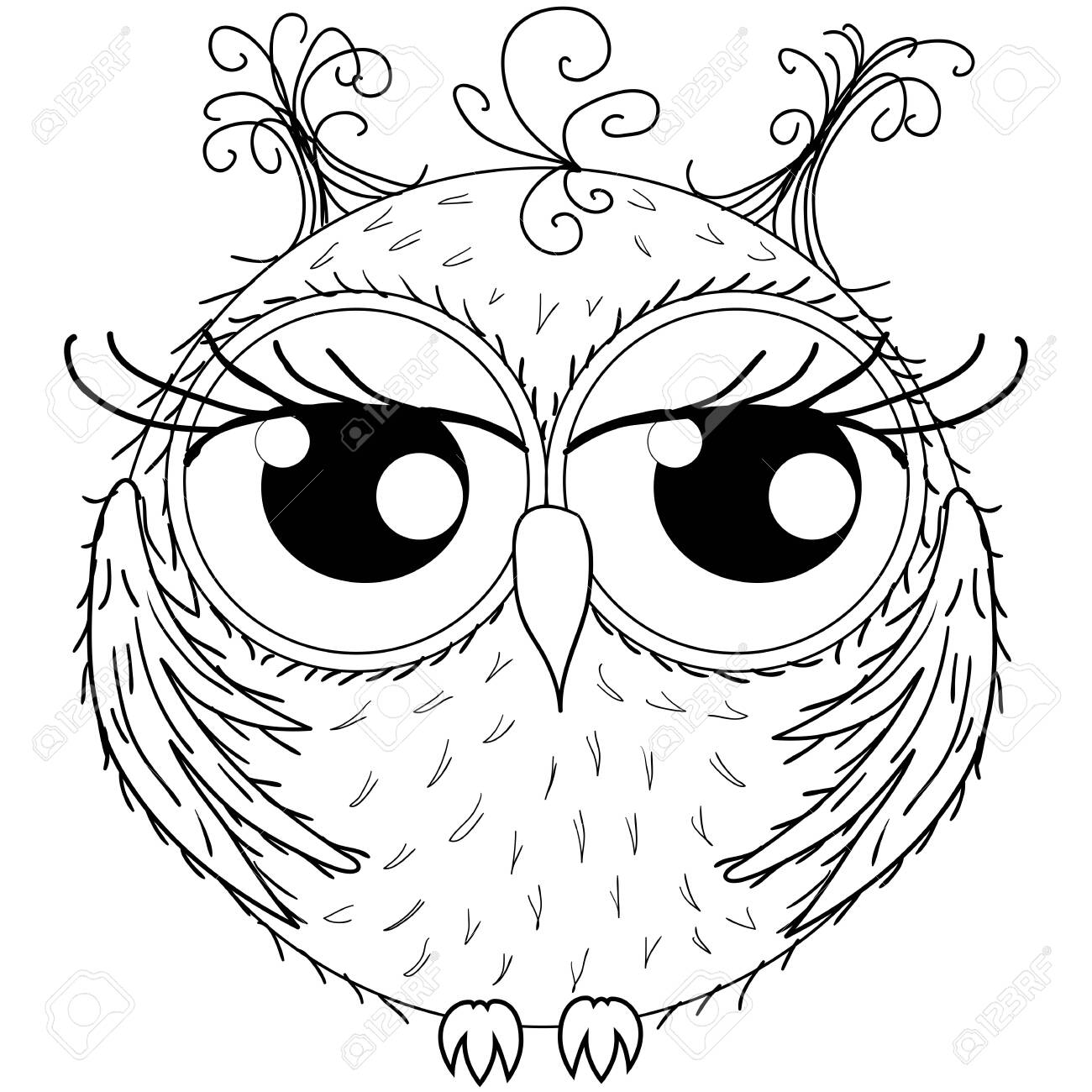 Sweet Round Owl With Wings A Bow And A Pussy Curious Eyes Pulled Royalty Free Cliparts Vectors And Stock Illustration Image