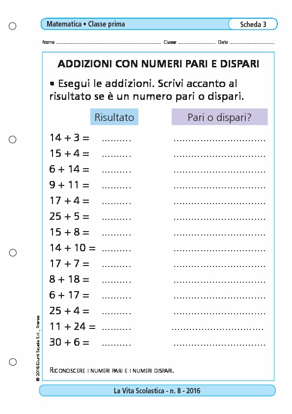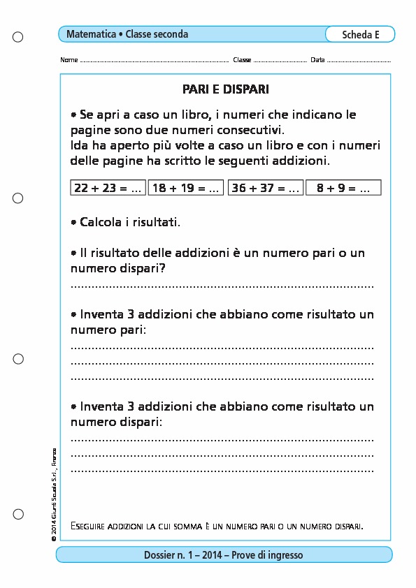 Addizioni Con Numeri Pari E Dispari Addizioni Con Numeri Pari E Dispari Giunti Scuola