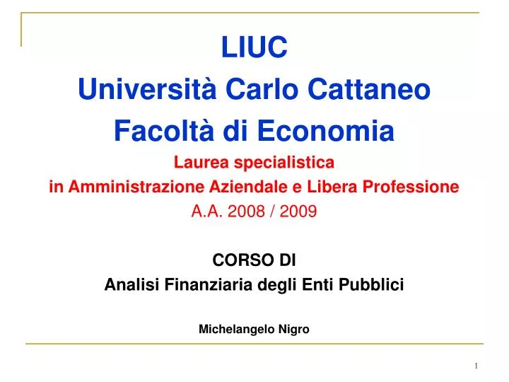 Ppt Liuc Universita Carlo Cattaneo Facolta Di Economia Laurea Specialistica In Amministrazione Aziendale E Libera Professio Powerpoint Presentation Id 115