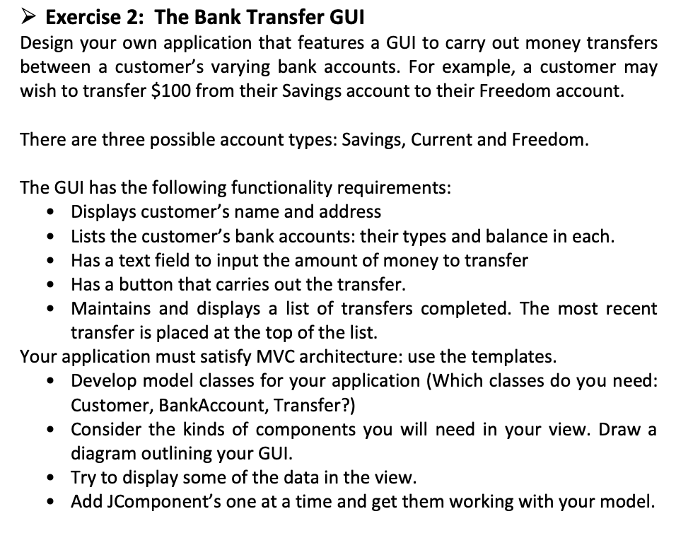 Solved Exercise 2 The Bank Transfer Gui Design Your Ow Chegg Com