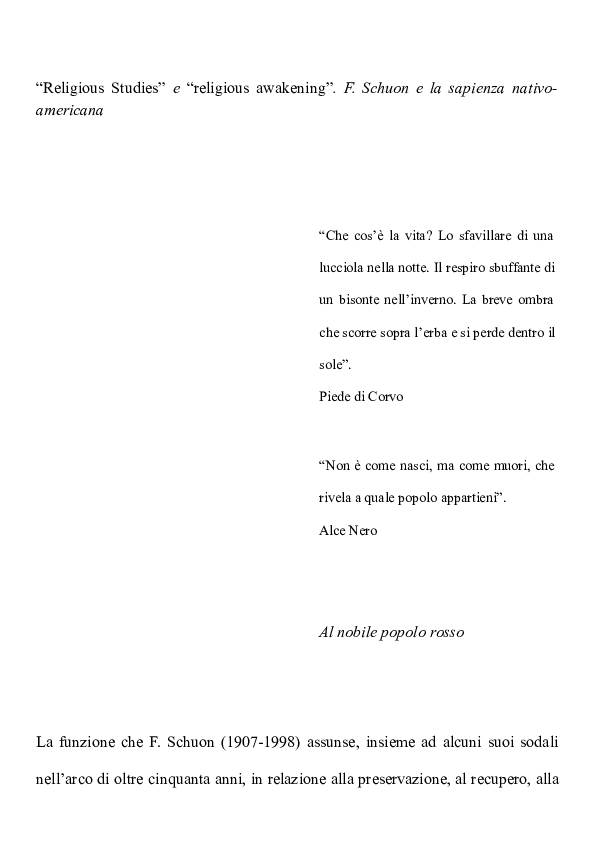 Doc Religious Studies E Religious Awakening F Schuon E La Sapienza Nativo Americana Marco Toti Academia Edu