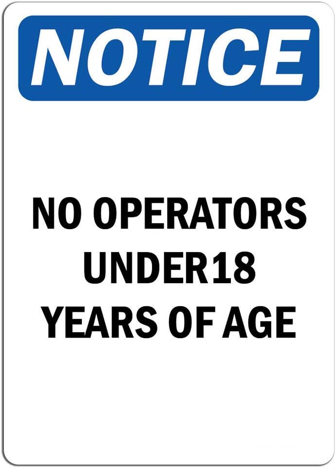 Amazon Com Notice Notice No Operators Under 18 Years Of Age Sign Label Decal Sticker Retail Store Sign Sticks To Any Surface 8 Office Products