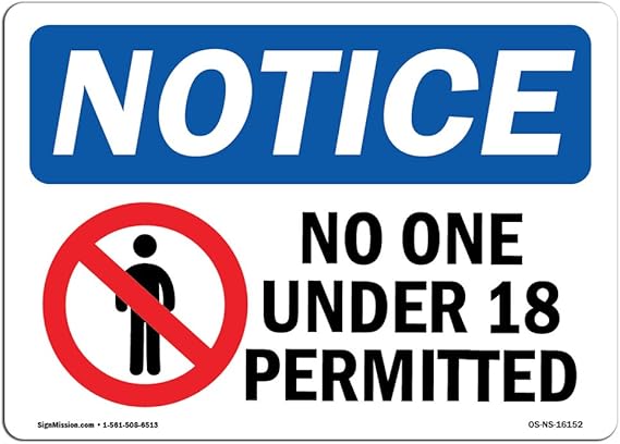 Notice No One Under 18 Permitted Osha Safety Sign 10x7 In Plastic Made In Usa Ebay
