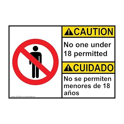 Caution No One Under 18 Permitted No Se Permiten Menores De 18 Anos Ansi Safety Sign 10x7 In Plastic For Restricted Access By Compliancesigns Amazon Com Industrial Scientific