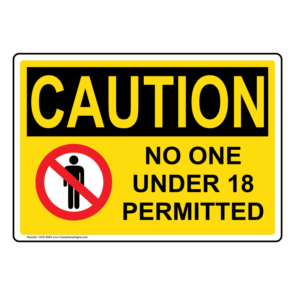 Contact Us Need Help Compliance Signs Search Fast Accurate Delivery Hello Sign In For Account Orders 0 Cart Shop By Category Custom Products Osha Caution No One Under 18 Permitted Sign With Symbol Oce 9593 Osha Caution No One