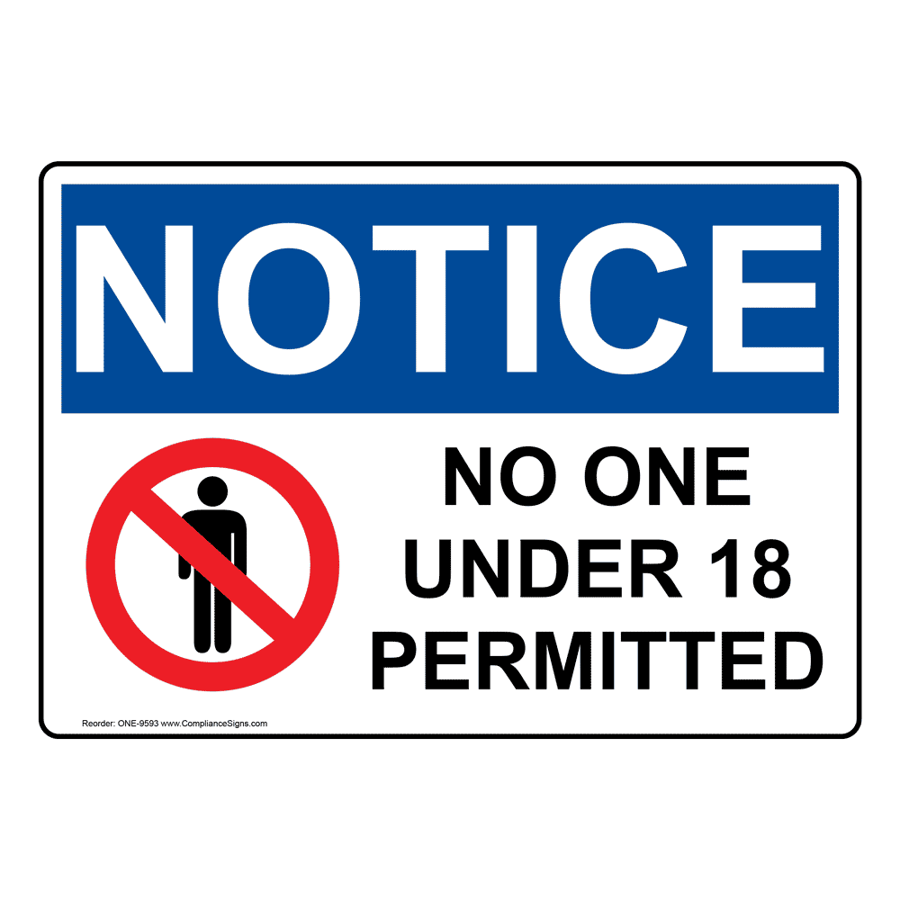 Remember, minors are allowed to sign contracts The actual signing is not the issue The problem is in ensuring that the contract is valid and properly enforced One option for a minor signing a nondisclosure and wishing to ensure that it’s valid is to sign close to their 18th birthday Once they turn 18, the contract will essentially be. Illustration about Under 18 sign warning symbol Over 18 only censored Eighteen age older forbidden adult content Can be used for web sites or mobile applications Illustration of older, forbidden, sign. NoOneUnder18 found in Portrait OSHA No One Under 18 Permitted Sign With Symbol ONEP9593, Portrait ANSI NOTICE No One Under 18 Permitted Sign ANEP USmade signs and labels.