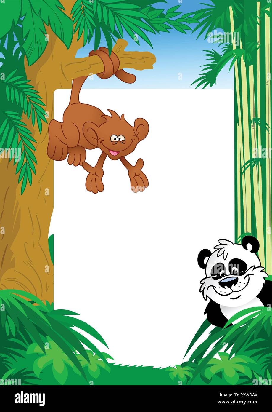 La Figura Mostra Una Scimmia E Panda Su Sfondo Bianco Telaio Per Testo E Jungle Realizzato In Stile Cartoon Su Livelli Separati Immagine E Vettoriale Alamy