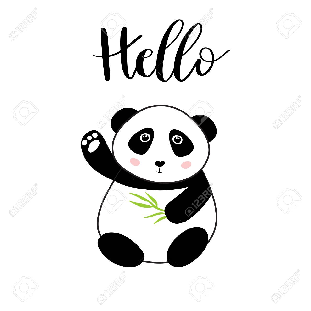 Panda Schizzo Illustration Testo Cartone Animato Vettore Ciao Panda Hello Schizzo Illustration Testo Vettore Canstock