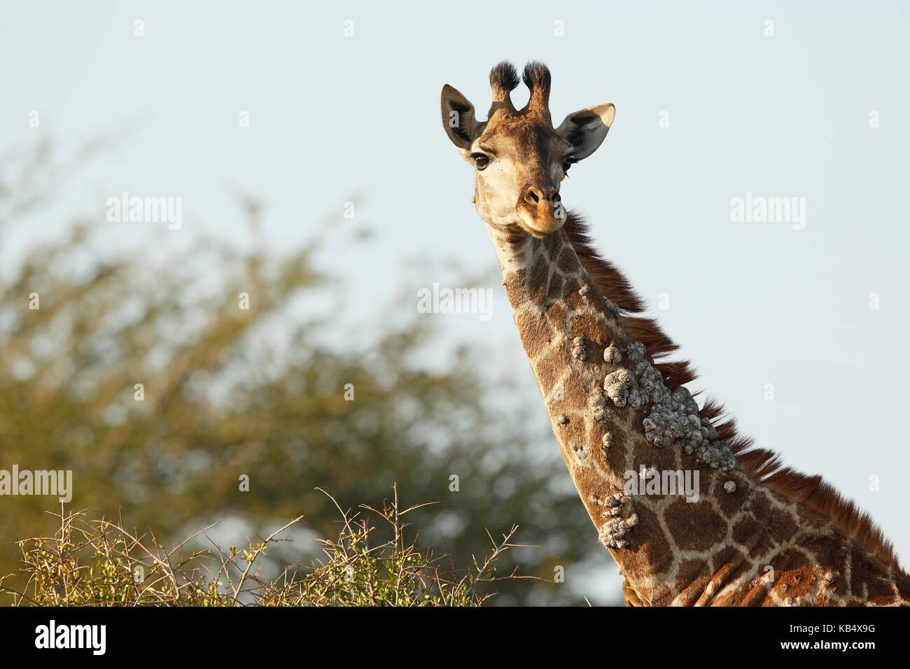 Ritratto Di Una Giraffa Giraffa Camelopardalis Con Una Malattia Della Pelle Probabile Dermatite Nodulare Contagiosa Sud Africa Mpumalanga Kruger National Park Foto Stock Alamy