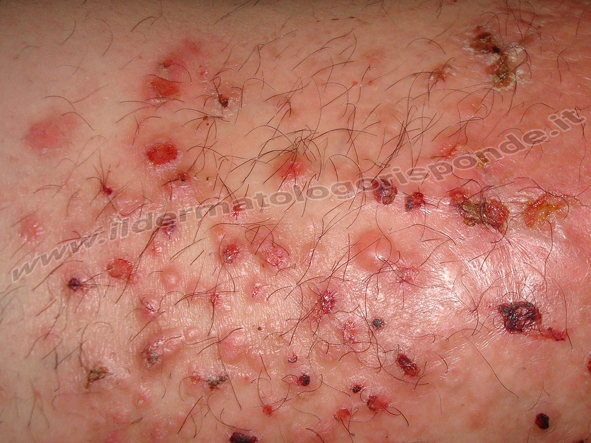 Nella prurigo nodulare, la persona colpita avverte prurito intenso, solo in determinate aree inizialmente, con bisogno incontrollabile di grattarsi alcune epatopatie, la dermatite a IgA. Lumpy Skin Disease (Dermatite Nodulare Contagiosa dei Bovini) È una malattia ad eziologia virale dei bovidi, a trasmissione principalmente vettoriale, che presenta una significativa morbosità nel bovino. Le informazioni contenute in questo sito sono presentate a solo scopo informativo, in nessun caso possono costituire la formulazione di una diagnosi o la prescrizione di un trattamento, e non intendono e non devono in alcun modo sostituire il rapporto diretto medicopaziente o la visita specialistica;.